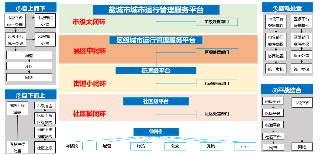 城市問題一網統管。在城市管理問題上,鹽城市采用智能采集、全網協同、長效管控的模式。