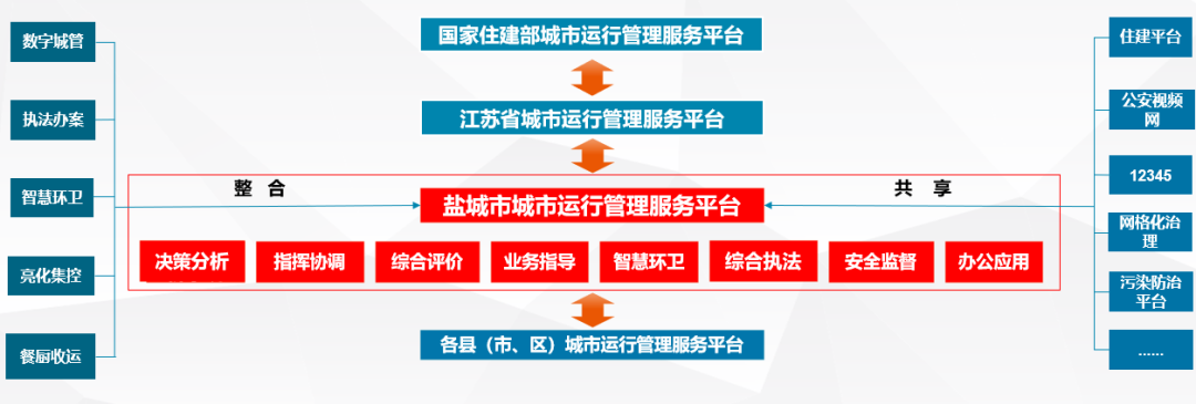 全業務集成平臺。構建了橫向到邊,縱向到底的一體化全業務集成平臺,縱向向上對接省和國家級平臺,向下聯通縣(市、區)平臺 ;橫向對內整合原數字城管、智慧環衛、執法辦案等分散的平臺,實現“一局一平臺”,對外實現數十個相關部門指揮聯動。