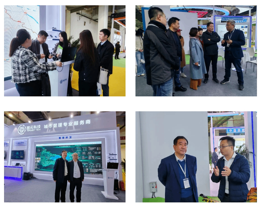 深圳市城市管理和綜合執法局、淮北市城市管理局、秦皇島市城城市管理局、宿遷市城市管理局、青島市嶗山區城市管理局、青島市黃島區垃圾分類協會、寧波市市容環境衛生指導中心、中國城市環境衛生協會、江蘇省城市管理與行政執法學會以及北京環境衛生協會等領導親臨圖元科技展臺,為展會增添了更多亮點與權威色彩。圖元科技的智慧環衛平臺、智能物聯、城市運行管理服務平臺、城市生命線等行業精細化應用解決方案獲得領導一致好評。