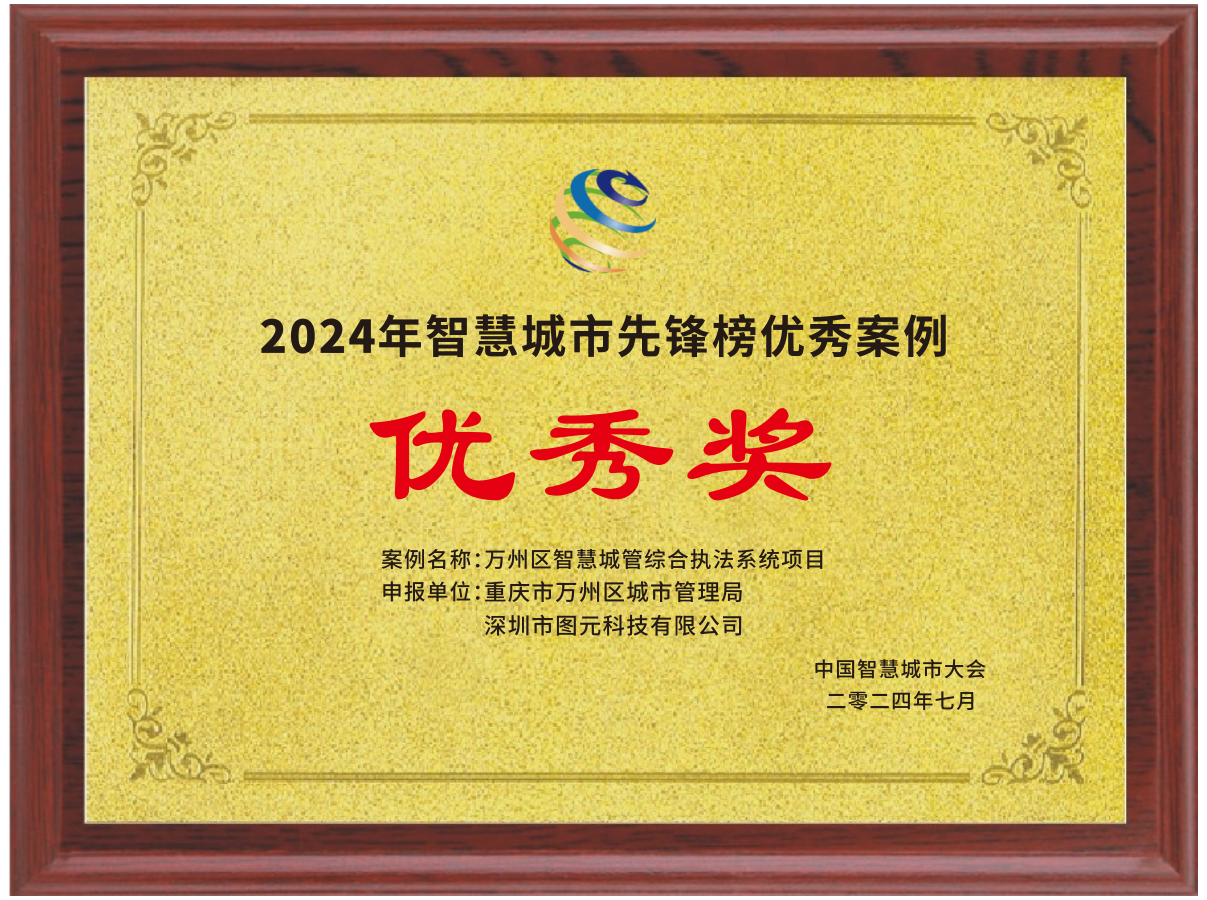 此外,圖元科技憑借在城市管理領域近20年的經驗,和客戶一道打造了多個示范標桿案例,在2024度的中國智慧城市大會的優秀案例評選活動中獲得了“智慧城市先鋒榜優秀案例一等獎”等多個獎項。
