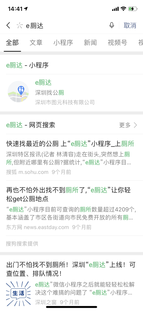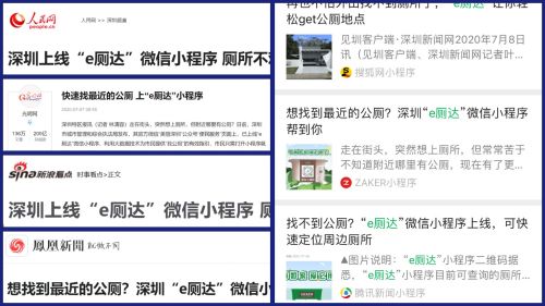 師兄還告訴小李,“e廁達”小程序其實在去年就上線了,自上線起,各媒體爭相報道。該小程序由深圳市圖元科技有限公司研發,攜手深圳市環衛主管部門,大力推進“廁所革命”,解決大家“如廁難,難如廁”的困擾。深圳財經《深圳直通車》欄目也多次邀請圖元科技進行現場采訪錄制,希望大家多多關注與收藏,給更多市民帶去便利,以應對不時之需。